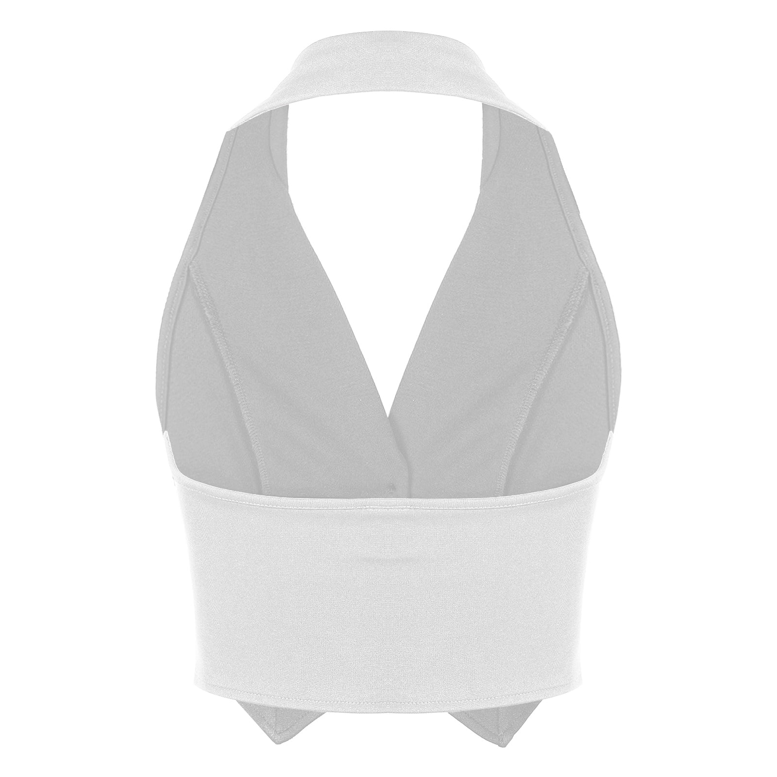 Womens fashion solid color crop tops halter backless button down pointed hem vest.