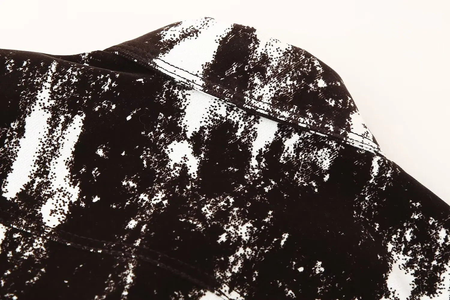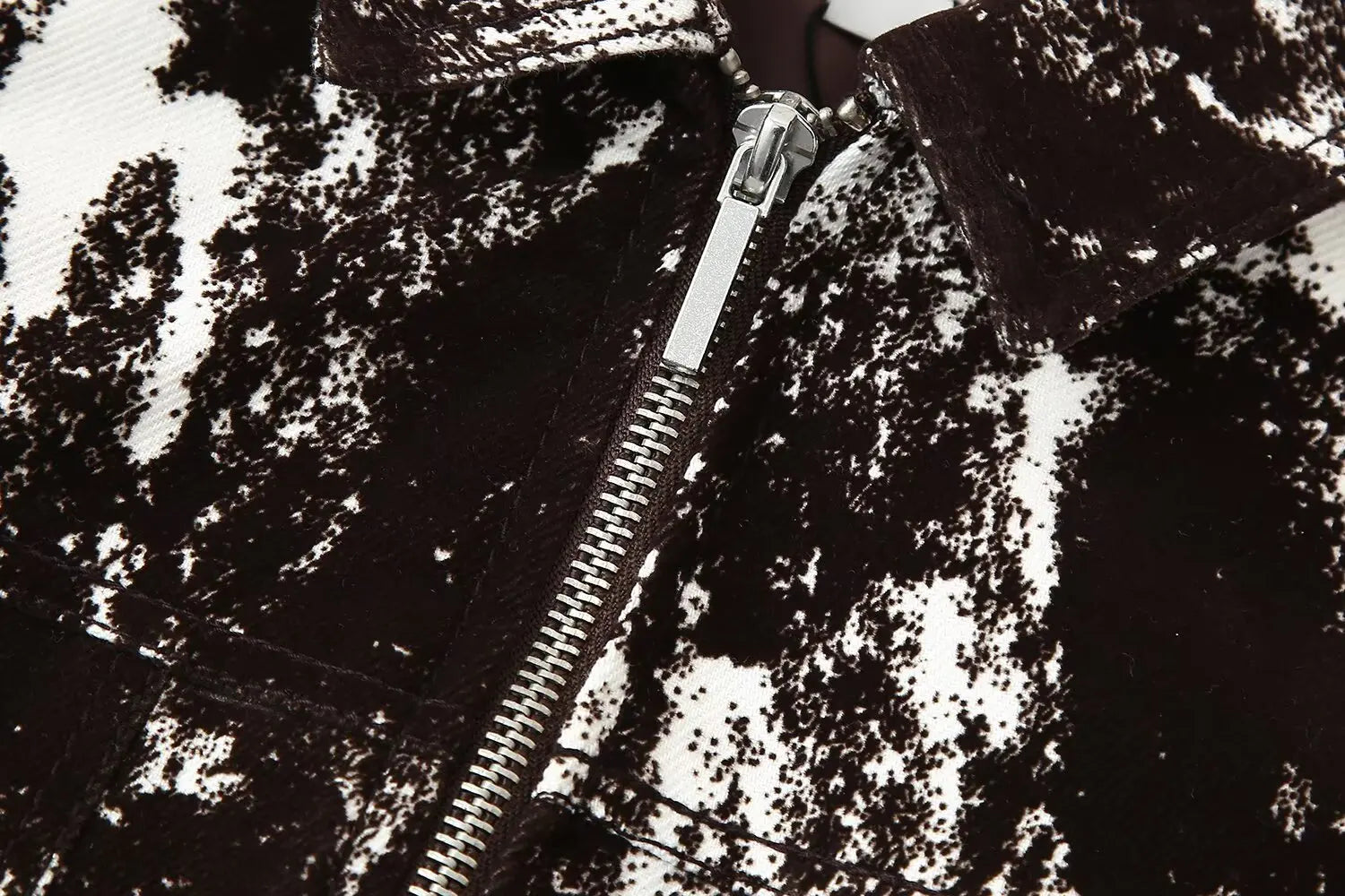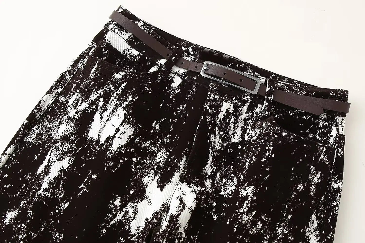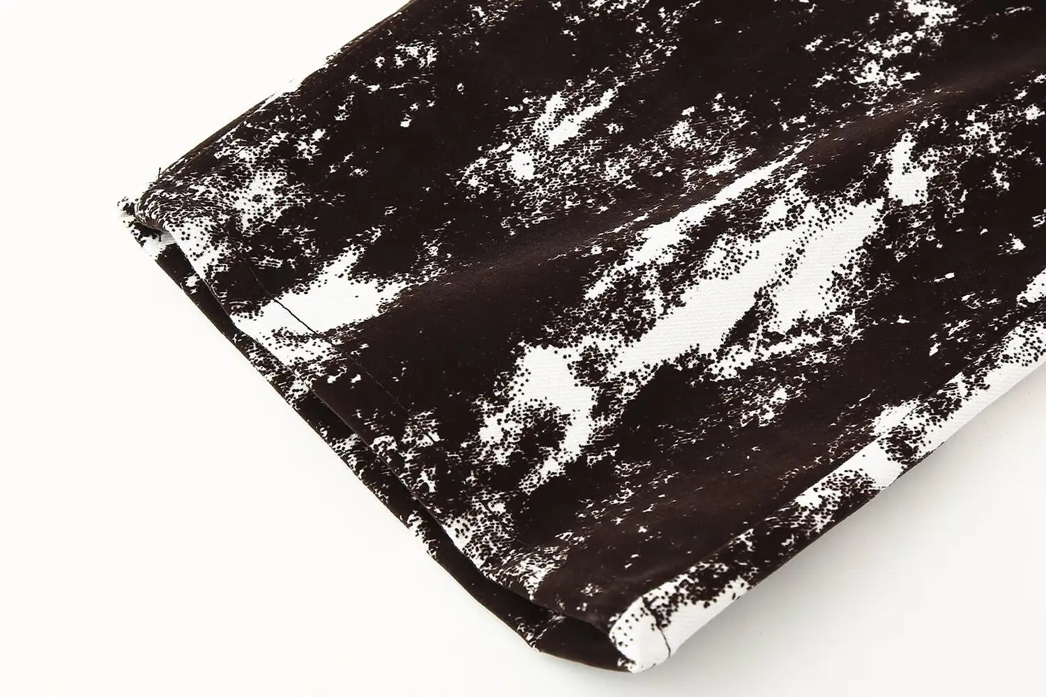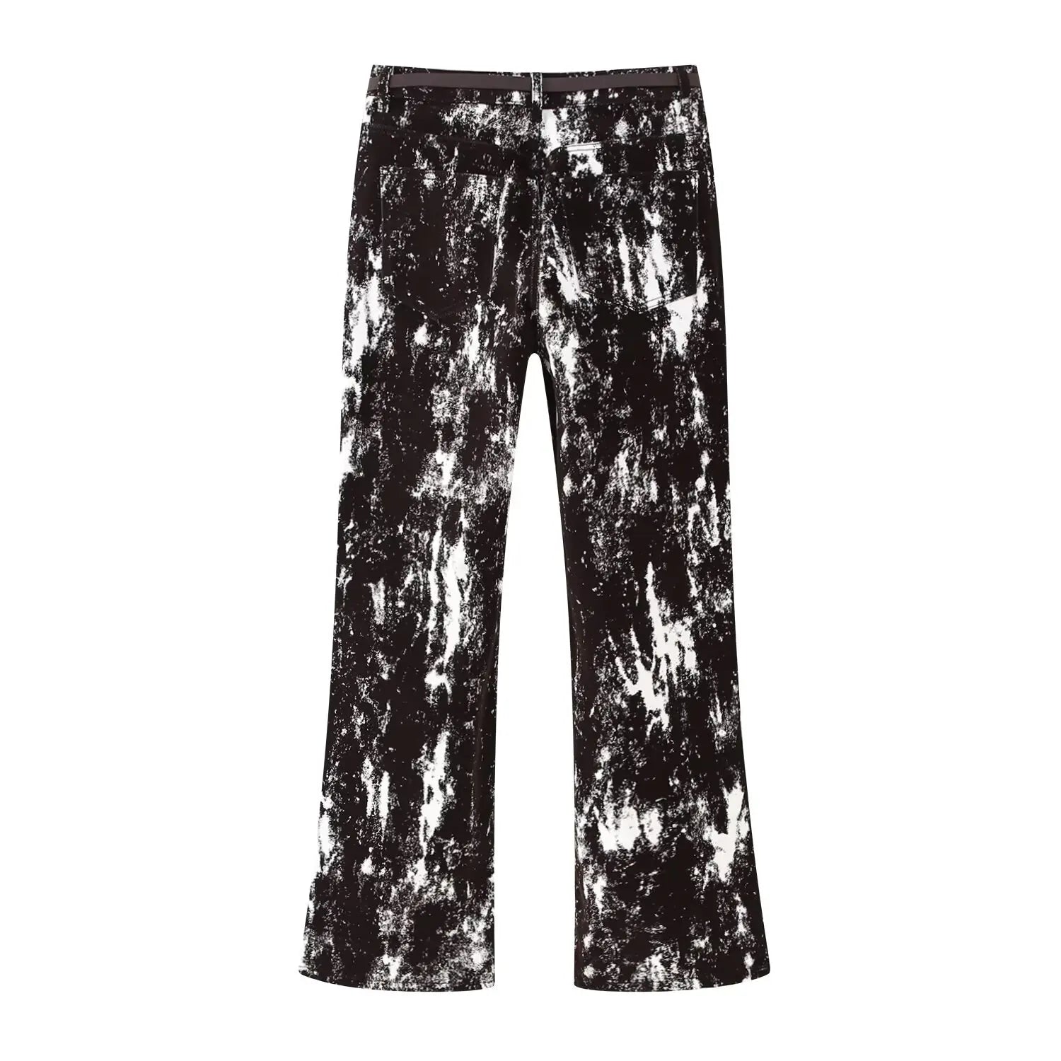 This set features a stylish black and white patterned jacket and wide leg pants, perfect for daily wear.