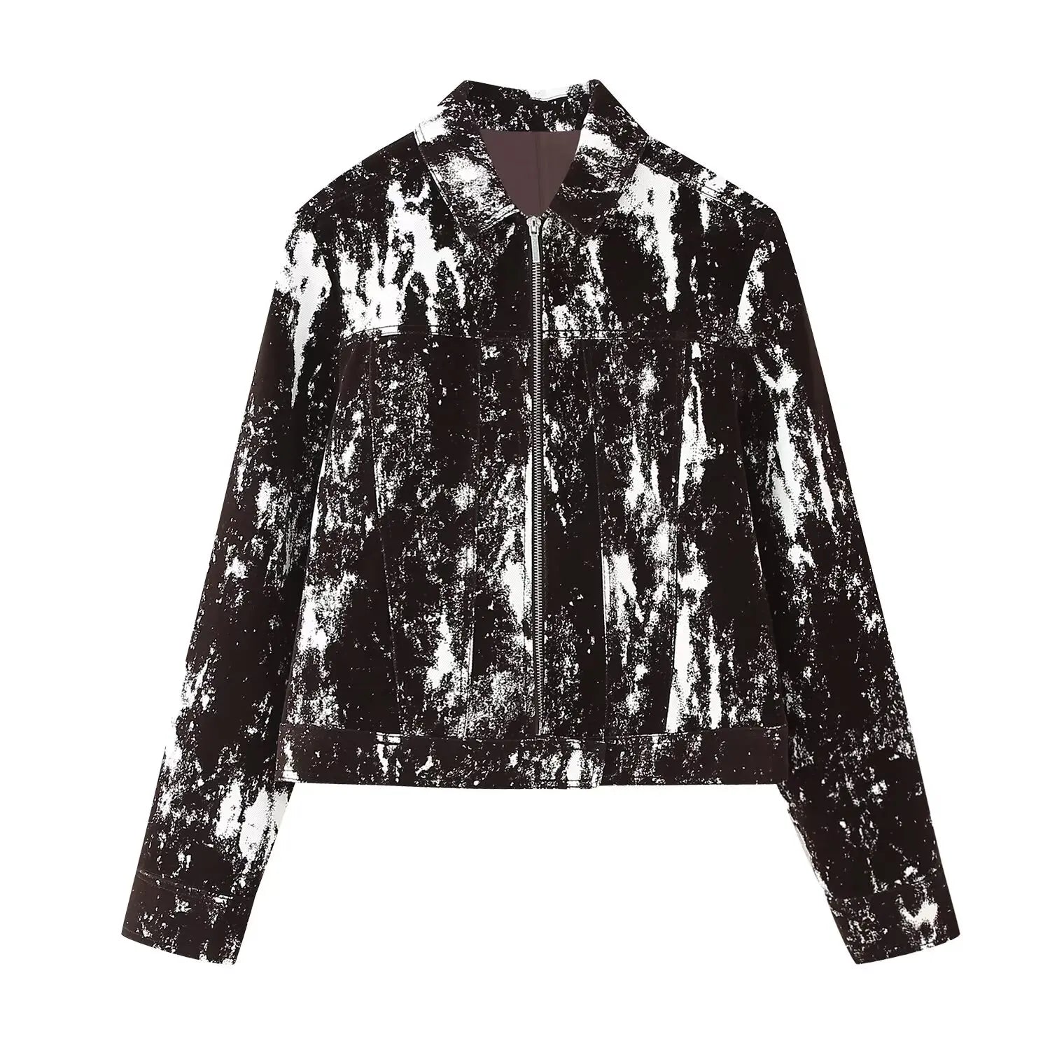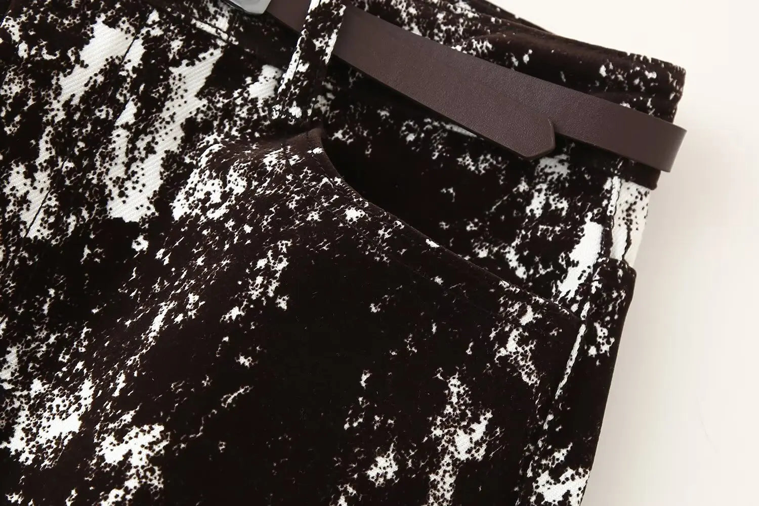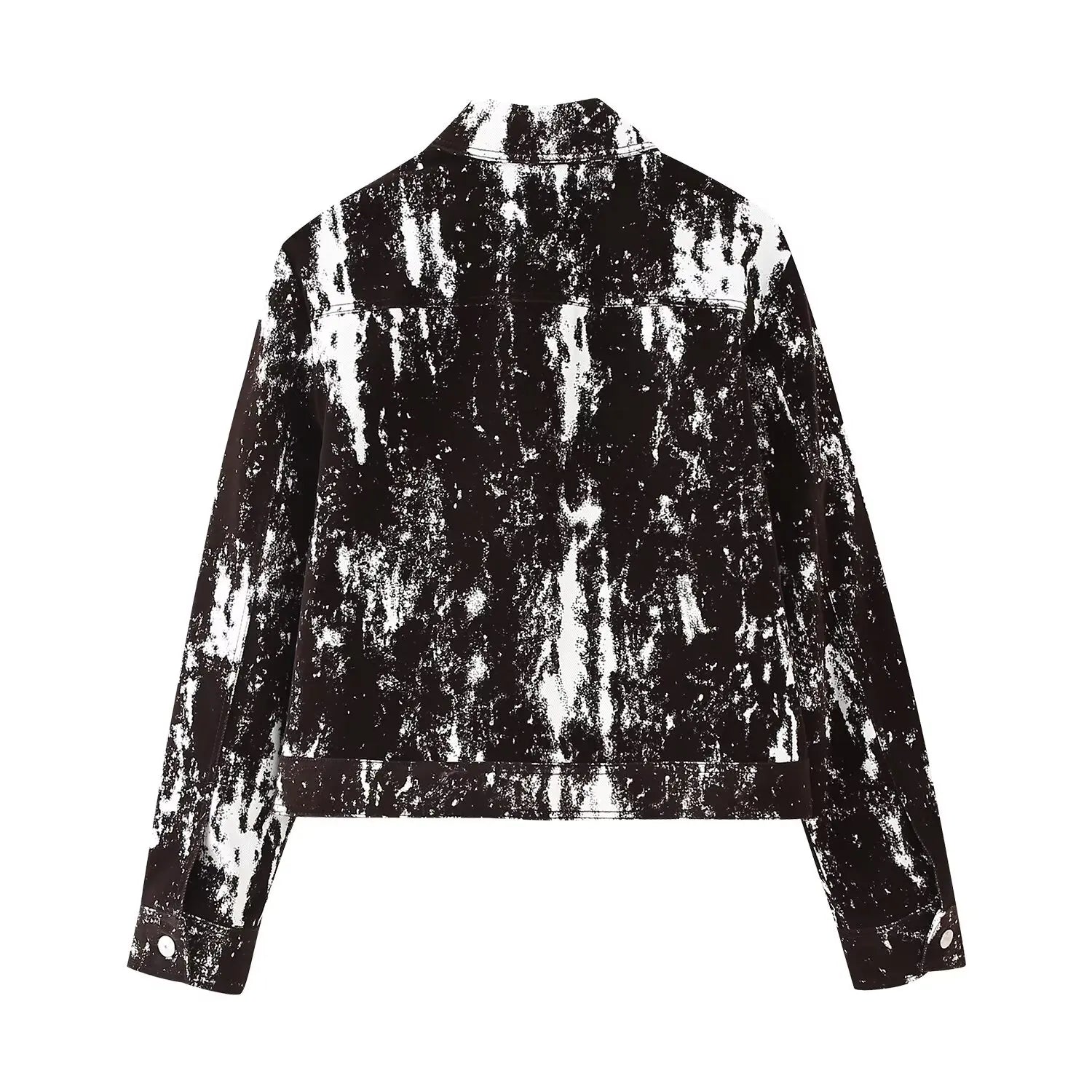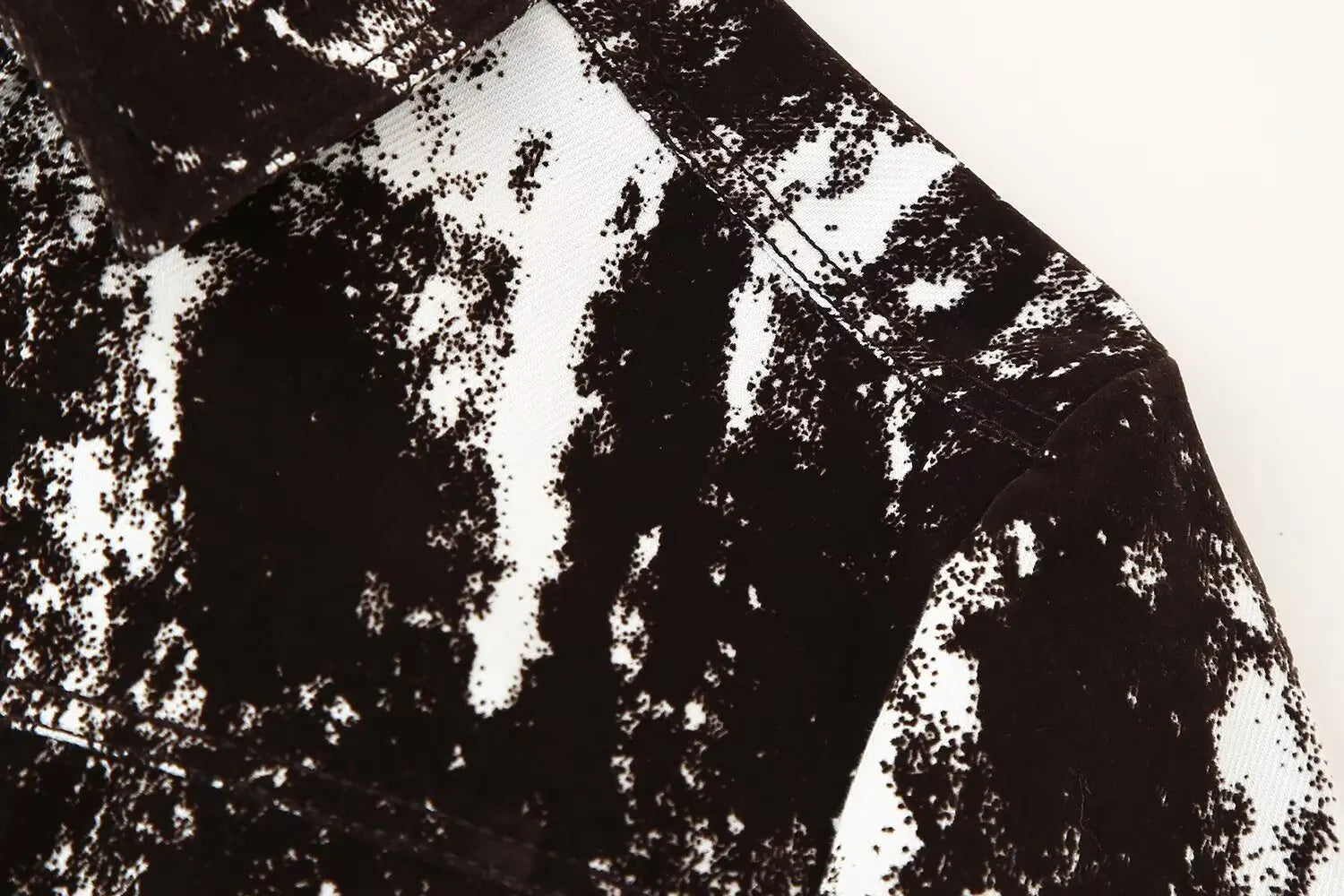 This set features a stylish black and white patterned jacket and wide leg pants, perfect for daily wear.