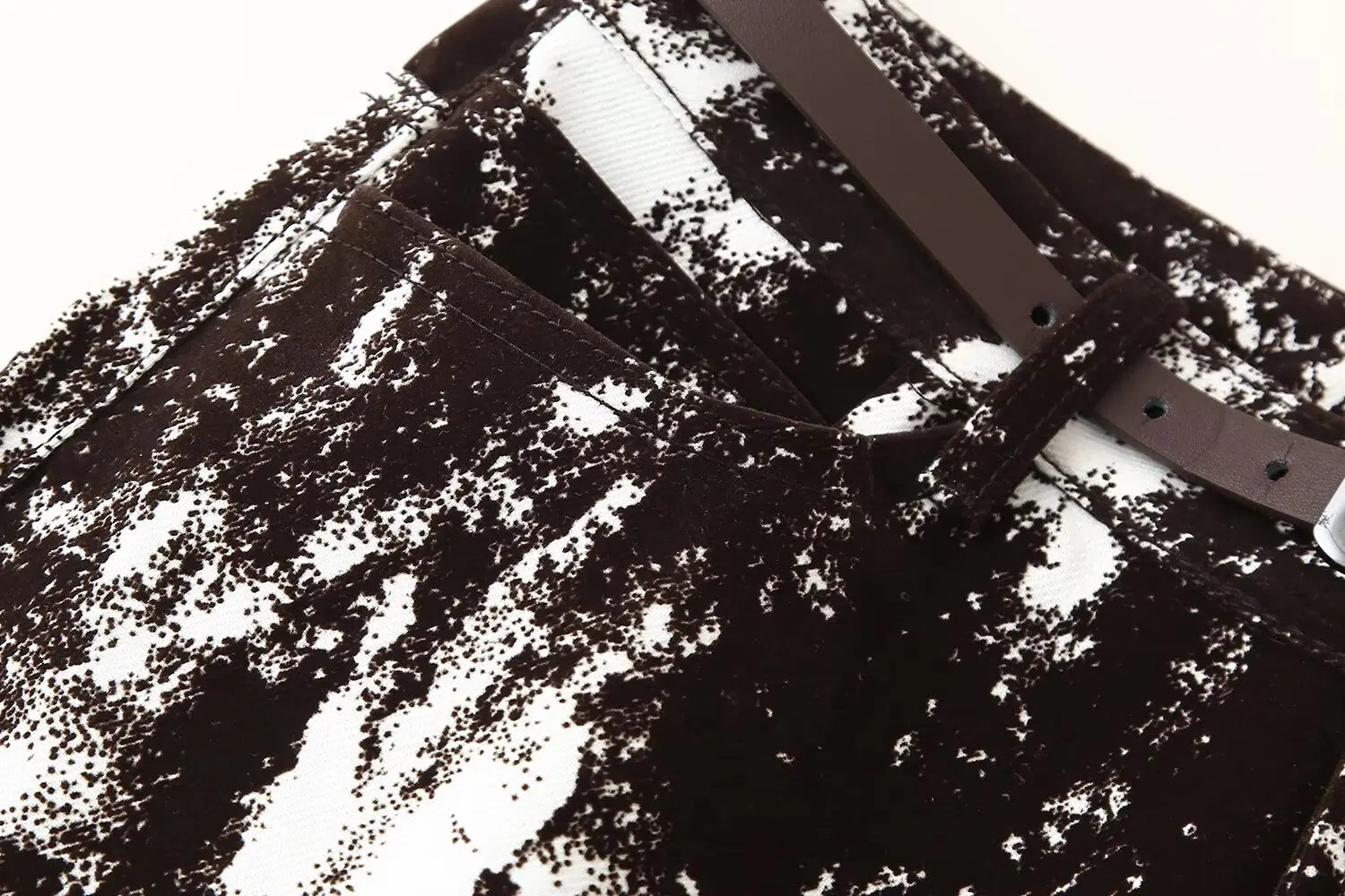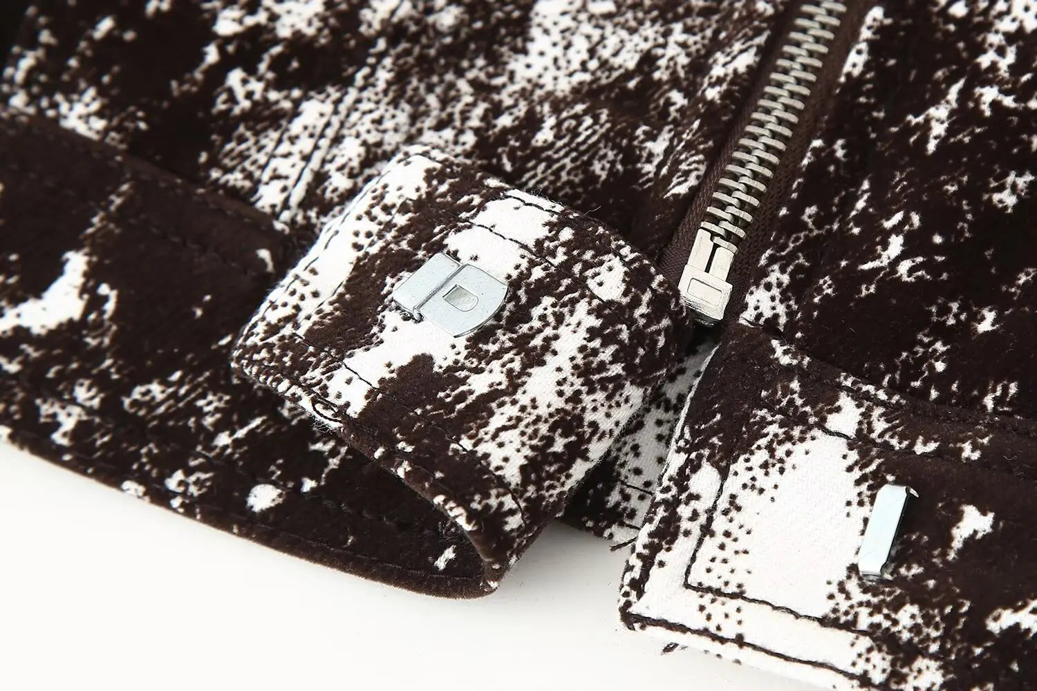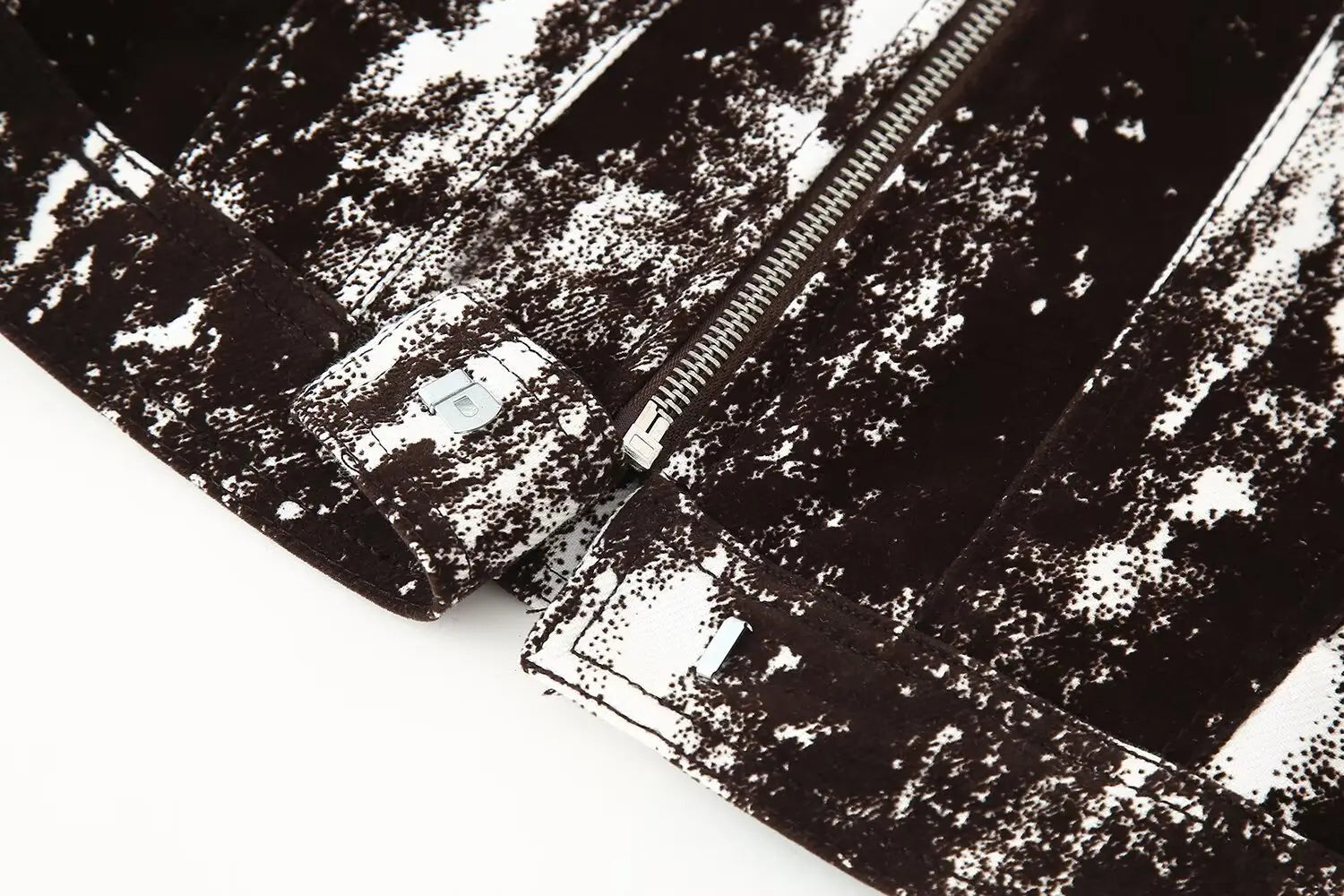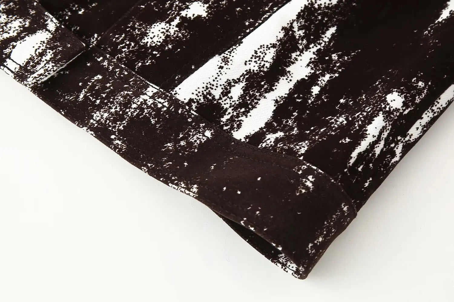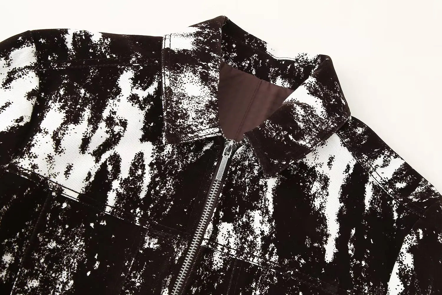 This set features a stylish black and white patterned jacket and wide leg pants, perfect for daily wear.