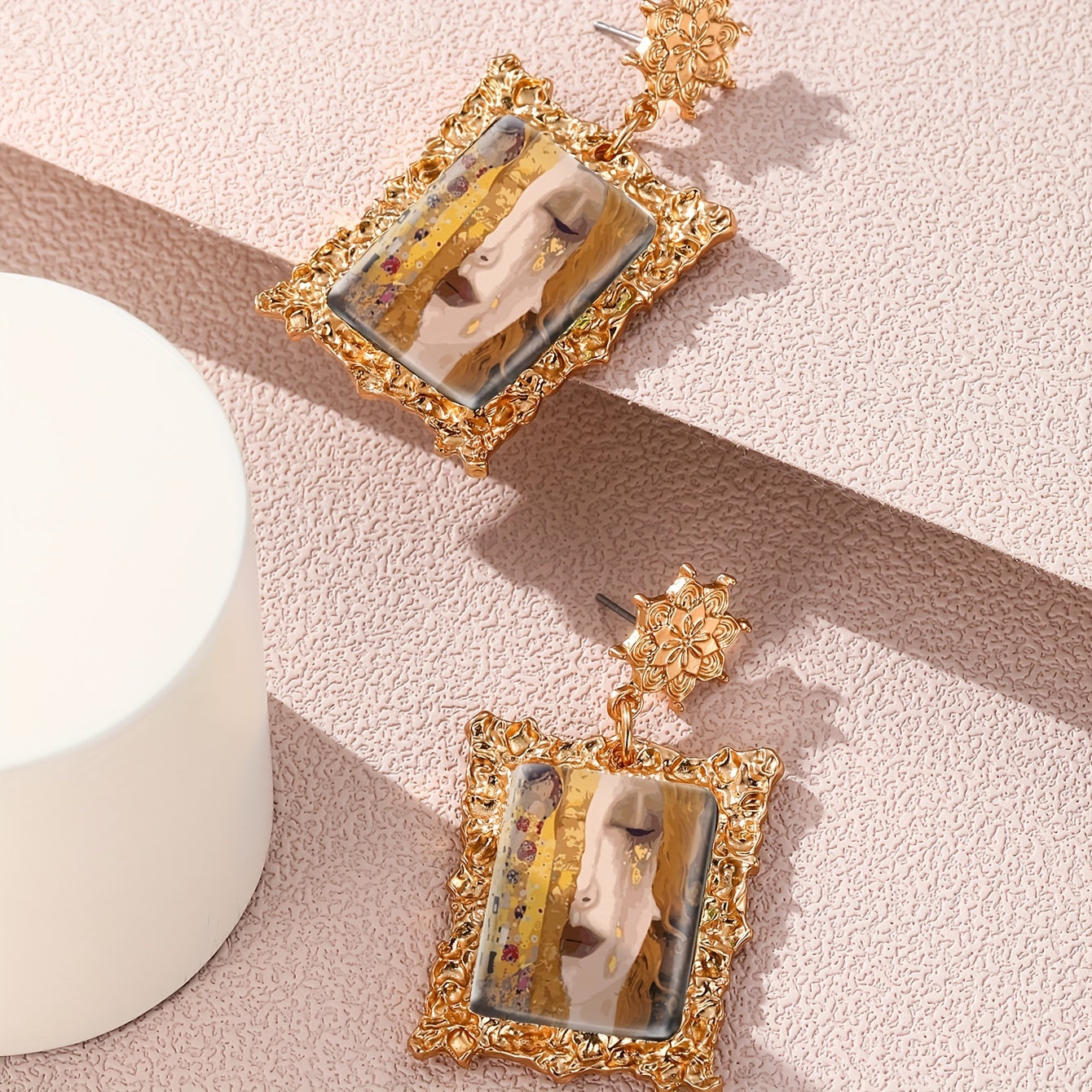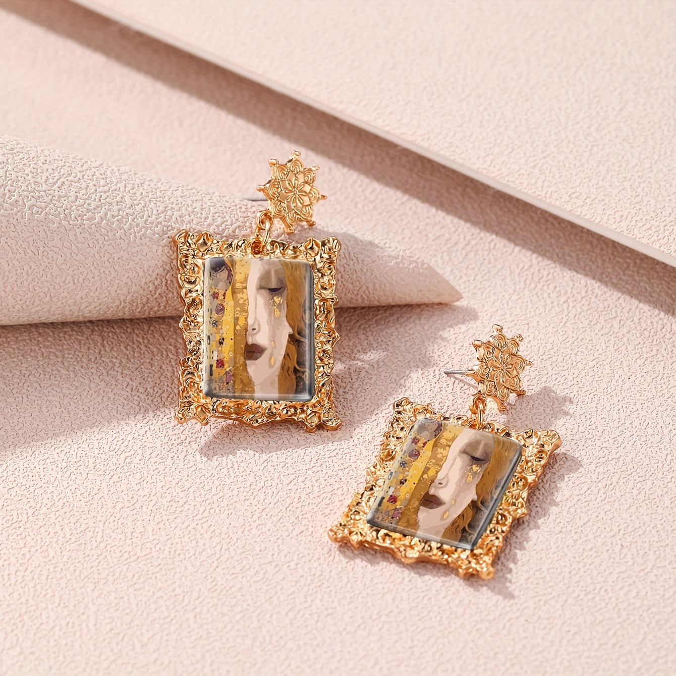 World Famous Painting Vintage Golden Drop Earrings Kiss Oil Painting Jewelry Elegant Luxury Style Glass Material Female Gift