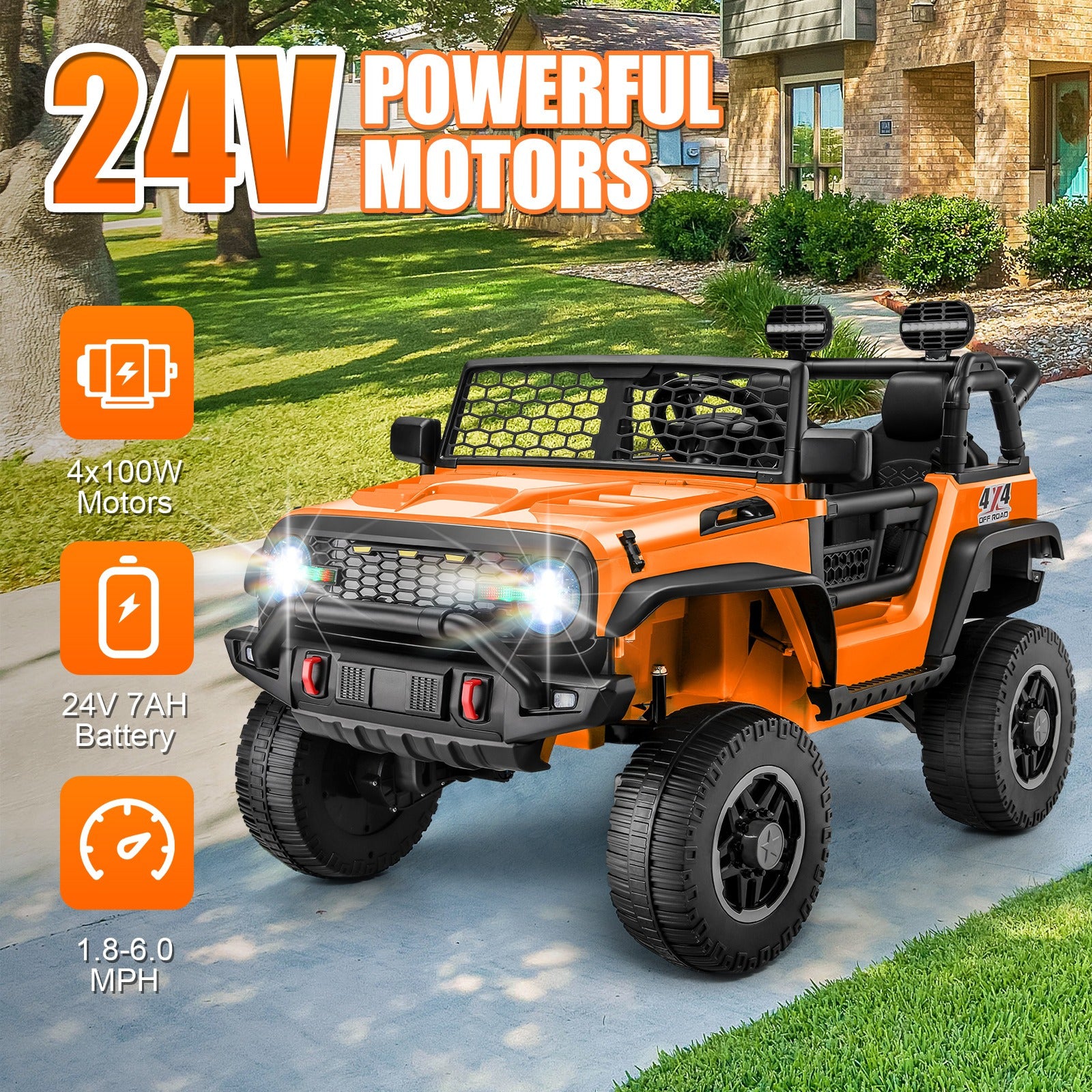 · 【Stable and Funny Driving】This kids' ride-on toys come equipped with 4 stable spring suspension systems, providing your child with a smooth and comfortable ride. Equipped with Music player interfaces, your child can play their favorite music while driving.